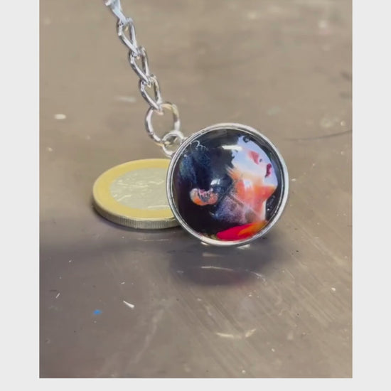 Un Porte clef bijou en forme de boule de verre à double face avec un alliage de zinc.