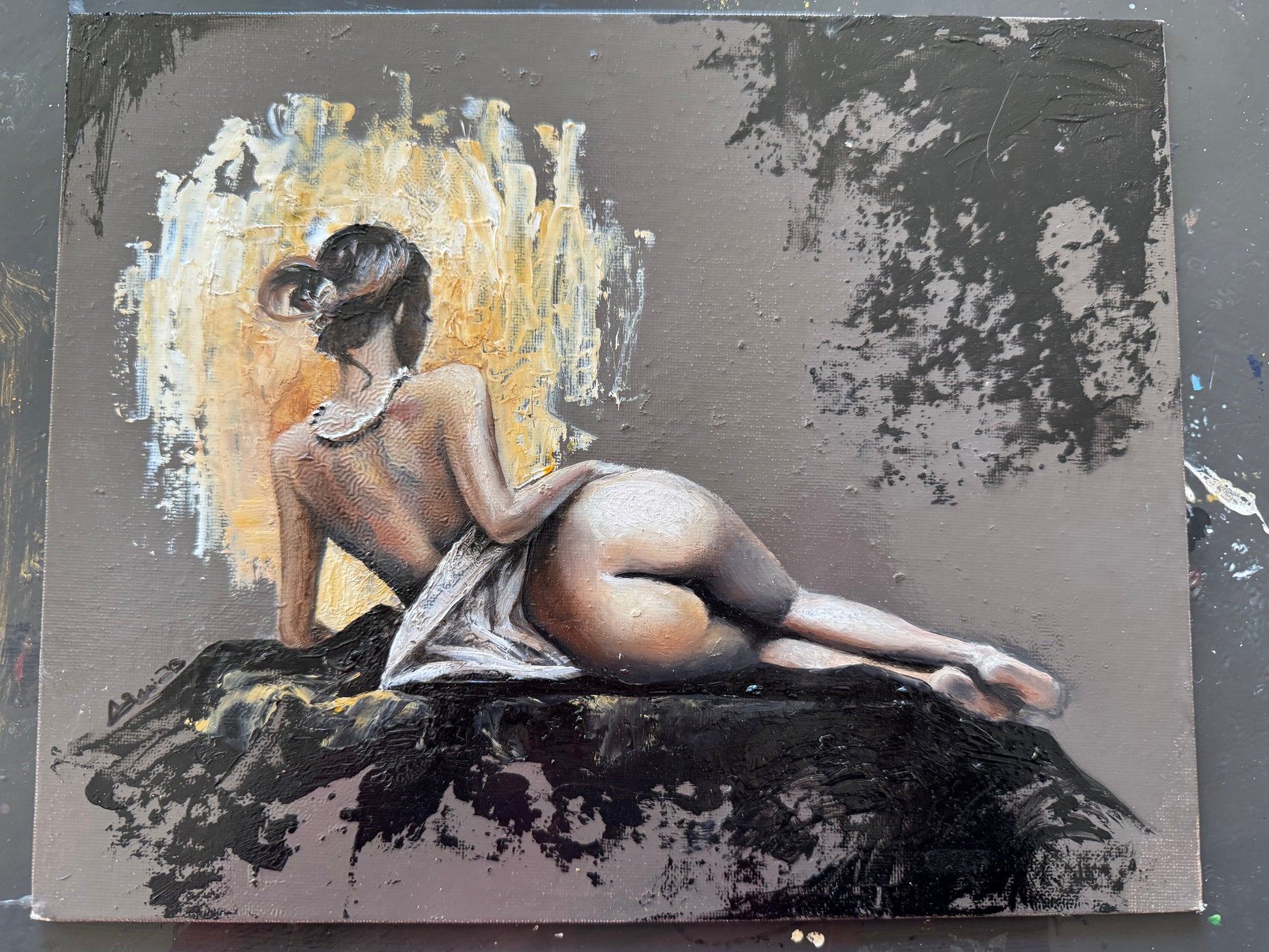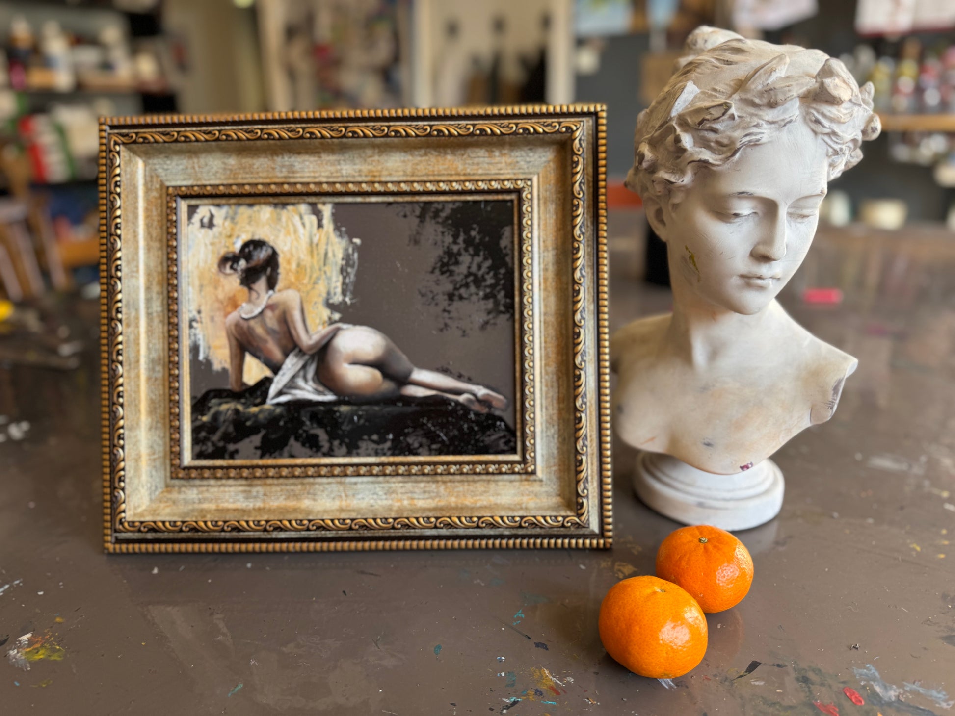 "Insolence" huile originale sur carton entoilé, encadré soigneusement avec certificat d'authencité.