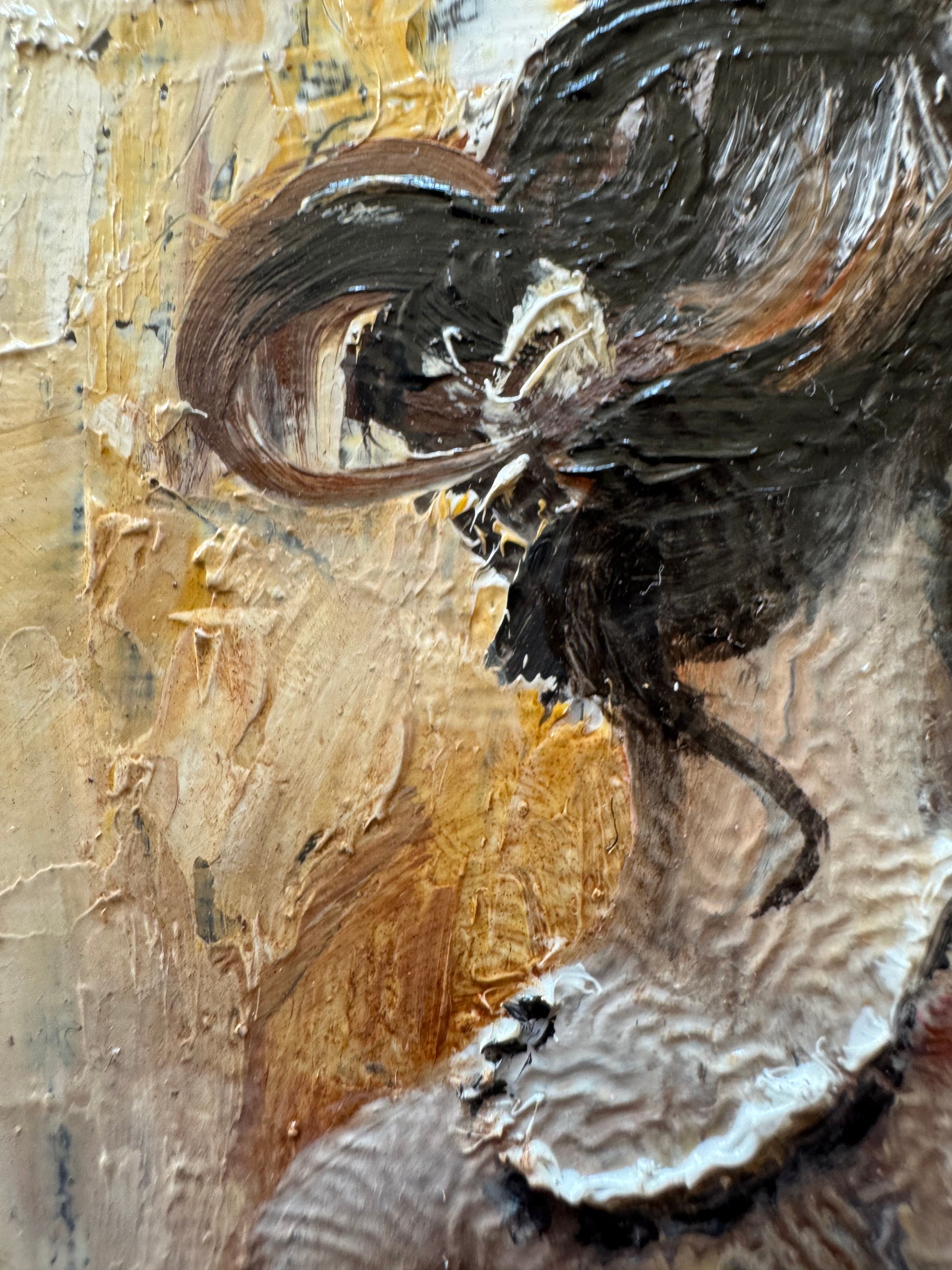 Tableau original de Tania B avec certificat d'authenticité. Le tableau est réalisé à l'huile sur fond d'acrylique avec craquelures sur carton entoilé.